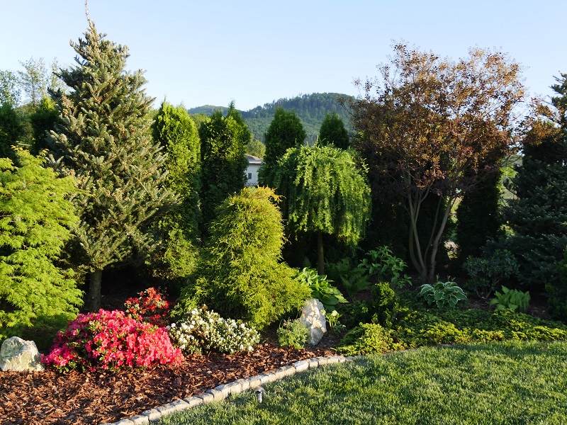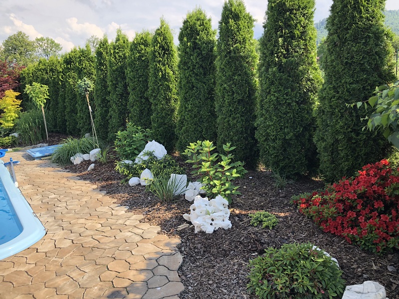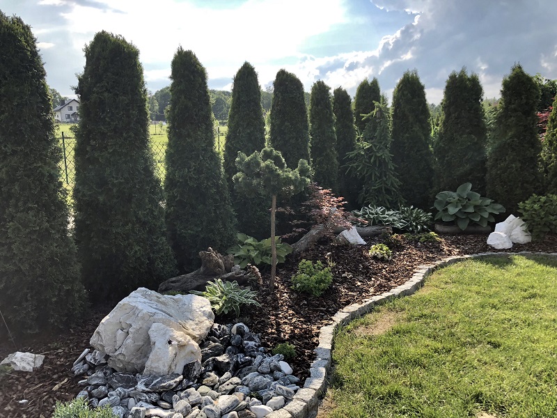 W 2011 roku, żeby odgrodzić się od wiecznie wiejących wiatrów posadziliśmy pierwsze rośliny- 138 thuj -