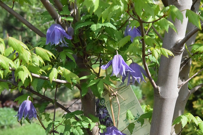 A świerk kłujący ubrał się w dzwoneczki powojnika, i kto mówi, że powojniki potrzebują ziemię wapienną :diabelek