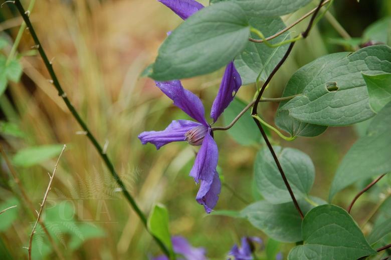 Kwiaty: średnie, 11 cm, otwarte, przewiesające, złożone z 4˗6 wąskich, fioletowoniebieskich, fantazyjnie poskręcanych działek z ciemnofioletową pręgą biegnącą przez środek, kwitnie VI-IX.