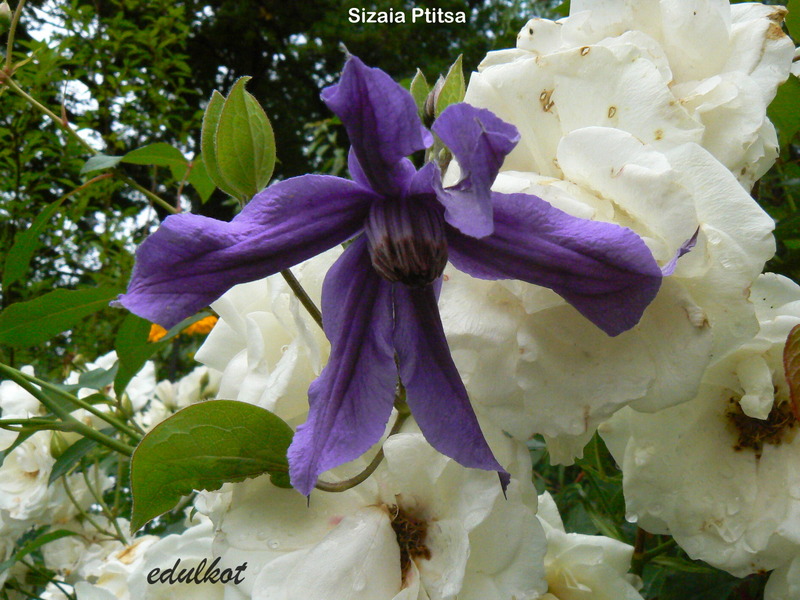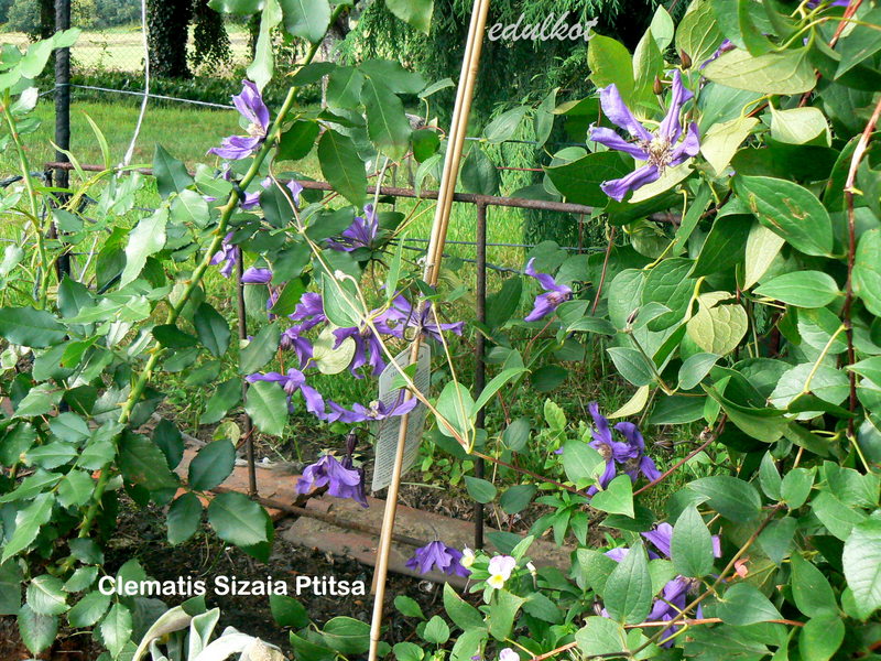 Sizaia Ptitsa u mnie jest trzeci rok, posadziłam go przy łysawej u dołu róży Mme Caroline Testout. Na razie kwitnie pojedynczymi kwiatami, ale pąków w tym roku już ma sporo.