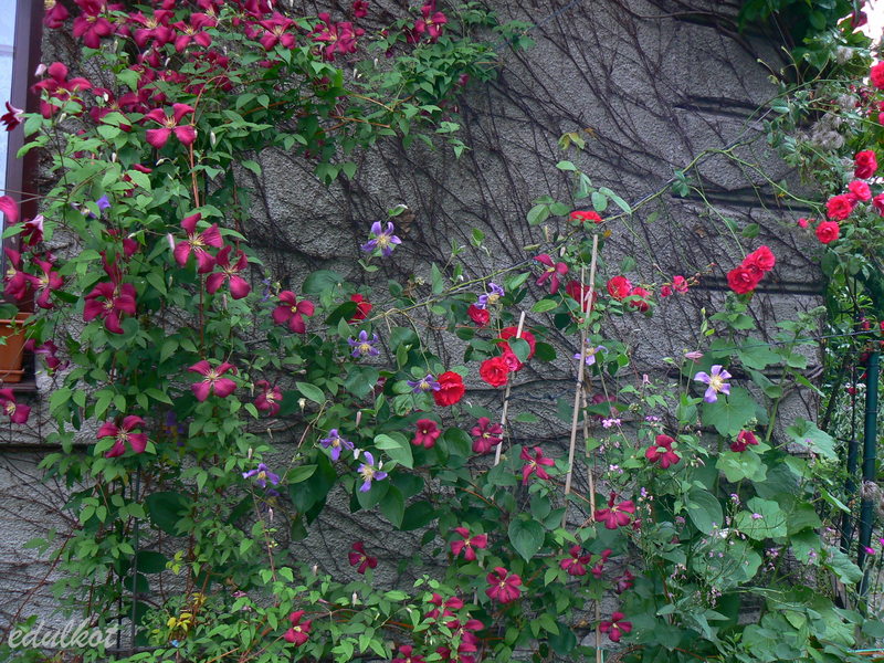 tu w towarzystwie odnogi róży Flammentanz i powojnika Madame Julia Correvon