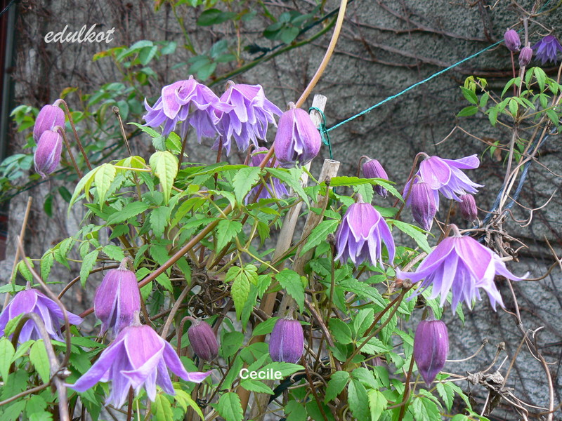Kwiaty: fioletowobłękitne, małe, półpełne, po rozwinięciu, średnica 6-8 cm, kwitnie kon. IV˗V