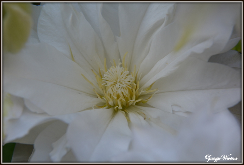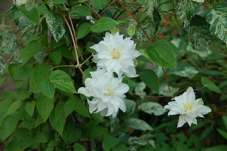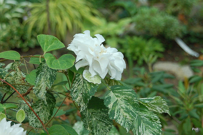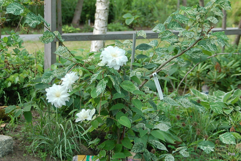 Kwiaty: pełne, białe o średnicy 12-15 cm; czasem z zielonymi przebarwieniami