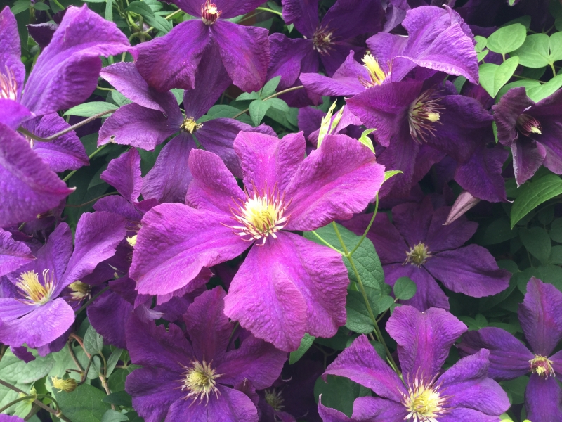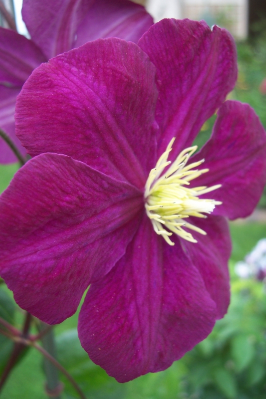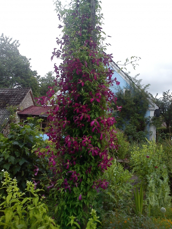 Mme Julia Correvon prawie studwudziestoletnia odmiana, niewymagająca, obficie kwitnąca. Posadziłam ją w tym roku, a już pięknie przyrosła i zakwitła. Ma stanowisko na wystawie południowo-zachodniej, rośnie na rabacie żwirowej przy ścianie domu.