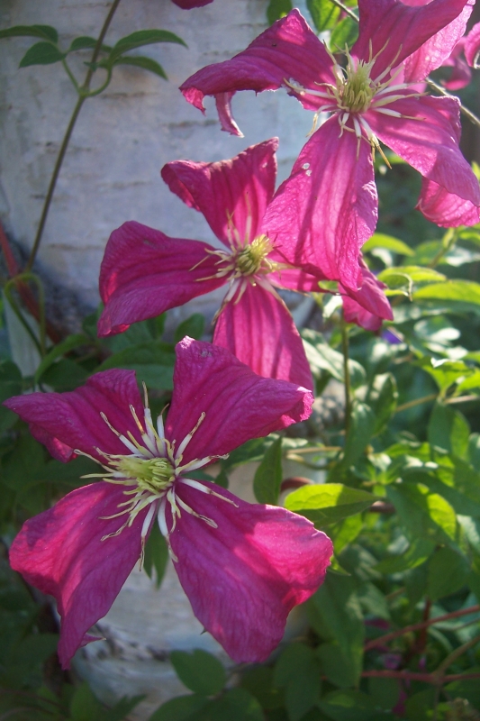 W tym roku dokupiłam ( nie w B. :) ), dwa clematisy Mme Julia Correvon i jeden Emilia Plater. Rosną posadzone w duuużych donicach; czekają na miejsce docelowe od zachodniej strony altany. Myślę, że po remoncie, gdzieś we wrześniu...