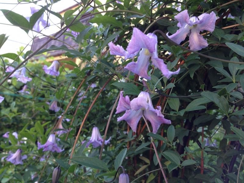 Pierwszy zakwitł powojnik Betty Corning - rośnie najbujniej ze wszystkich moich powojników, ma delikatne, niezbyt duże kwiaty w kształcie dzwonków, pachnące :) . Na zdjęciach może nie wygląda zbyt efektownie ze względu na dość blady kolor ale w rzeczywistości jest przepiękny, taki delikatny i zwiewny :heart .