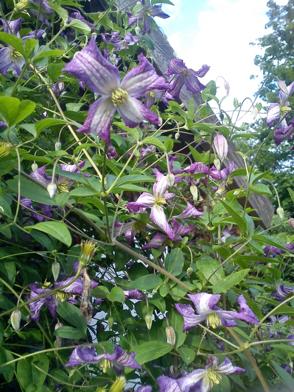 Powojniki włoskie to obok bylinowych moje ulubione - nie cierpią na uwiąd, bujnie rosną, nie kapryszą. Nie wszystkie się jeszcze rozkręciły.