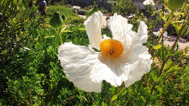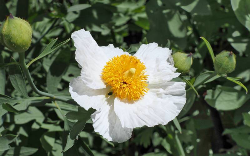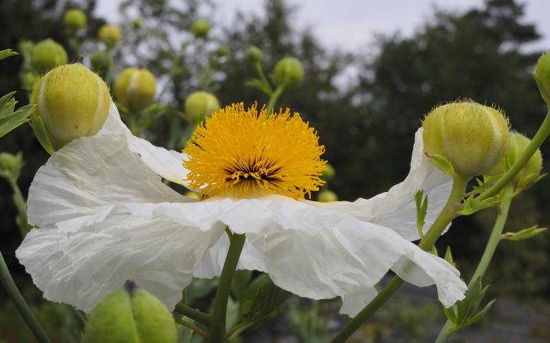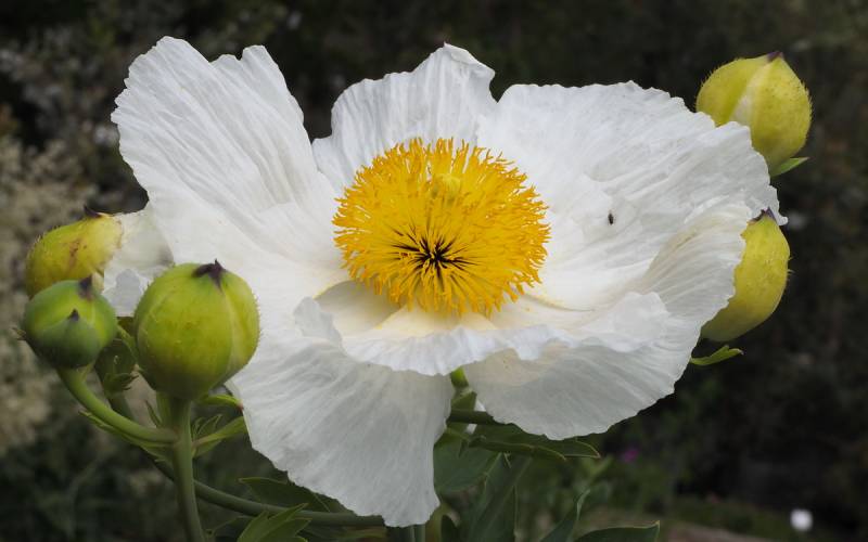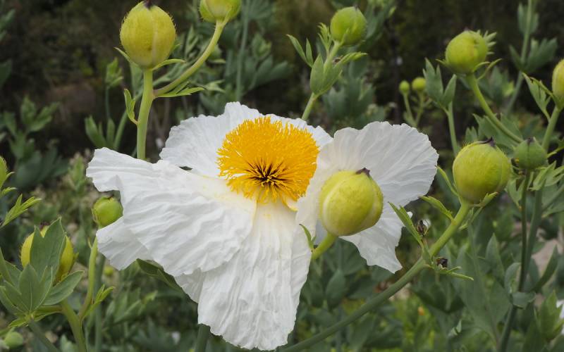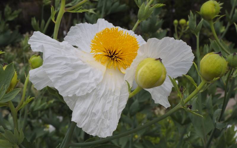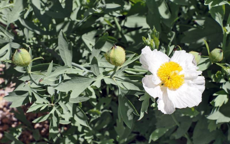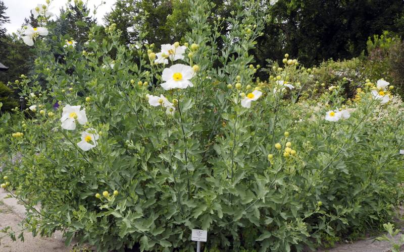 Romneya coulteri jest to piękna, okazała bylina (krzewinka o drewniejącej nasadzie pędu) z rodziny