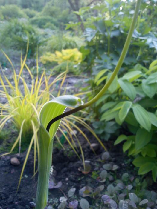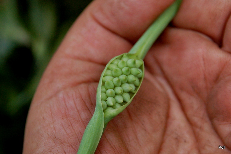 Ciekawe i oryginalne jest zakończenie kolby. To bardzo długi,gładki wyrostek,wystający z pochwy daleko poza roślinę. Dojrzałe rośliny w dobrych warunkach mogą osiągnąć nawet