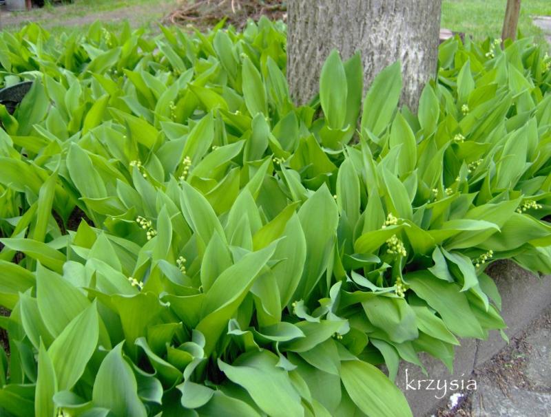 Moje są ograniczone betonem, mimo to wyrastają z każdej szczelinki. Dwa lata temu to miejsce zostało mocno sponiewierane przez synów, częściowo przekopane, ziemia, a raczej piasek nie rozplantowany, lecz konwaliom to nie zaszkodziło, powiedziałabym nawet, że wręcz przeciwnie.