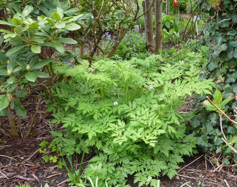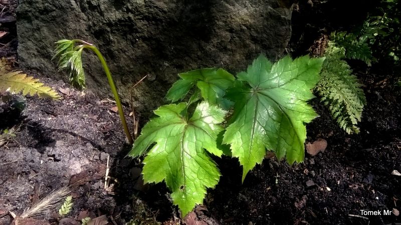 Actaea pachypoda (alba) bedzie miała białe owocniki. Teraz właśnie zaczęła pojawiać się nad ziemią.