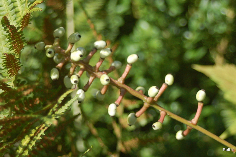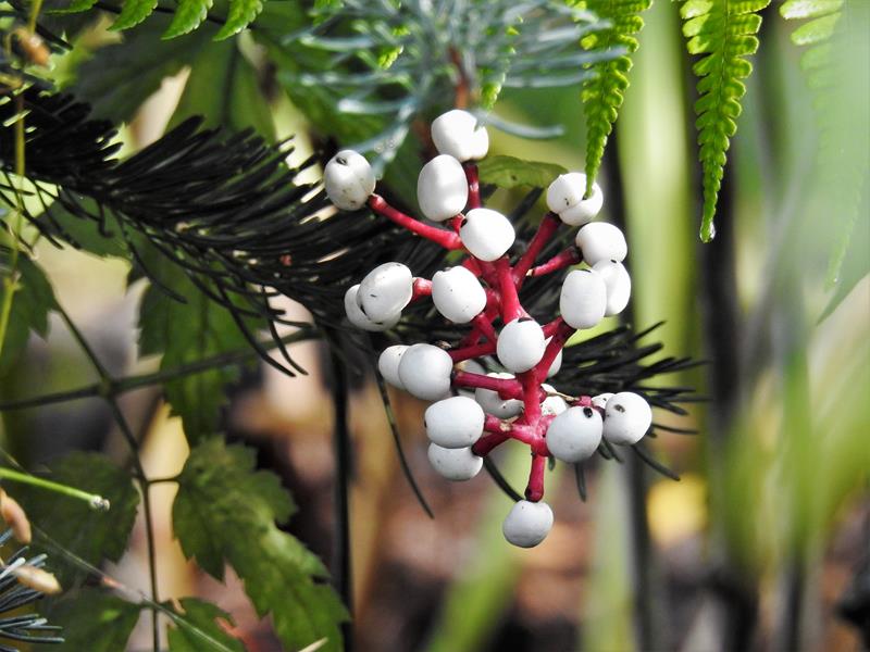 Nie zauważyłam kwitnienia świecznicy o białych owocach (Actaea pachypoda), ale musiała kwitnąć, bo teraz je prezentuje.