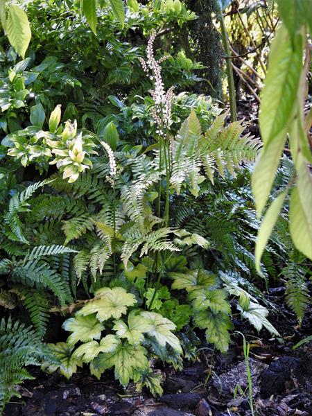 Kwitnie świecznica japońska 'Cheju-do'. Na razie rośnie w świetlistym cieniu, ale powoli robi się to miejsce cieniste.