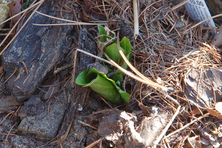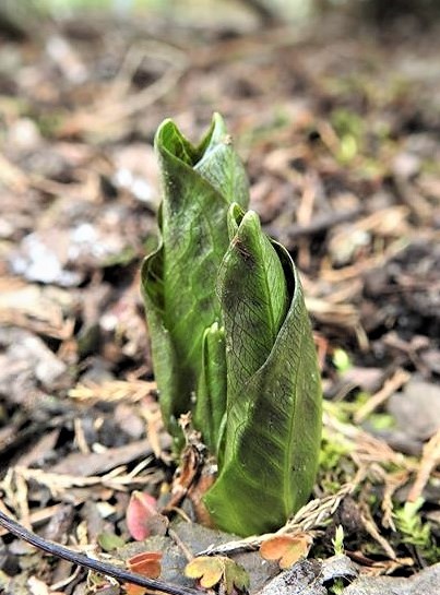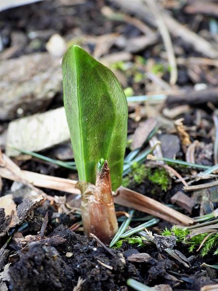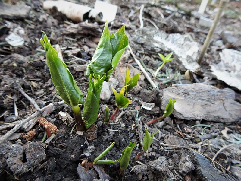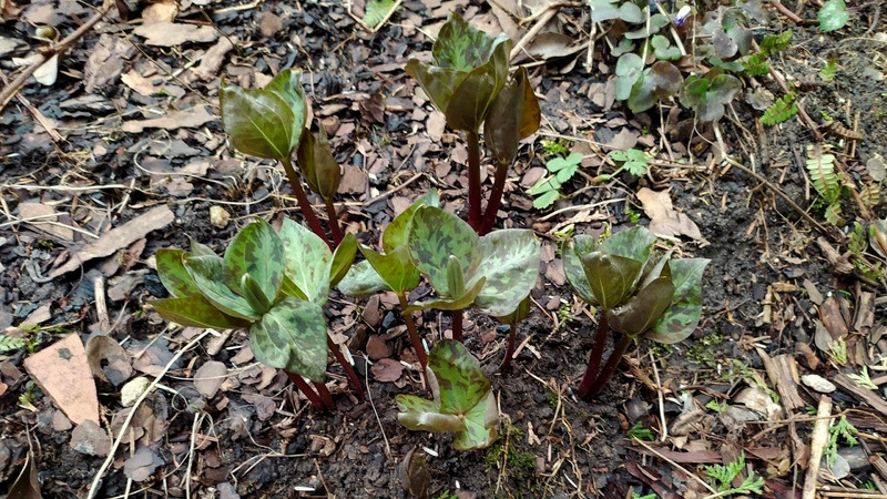 Trillium chloropetalum wystawiło kilka dni temu z ziemi nosy, ale zasypałam je ściółką i suchymi liśćmi