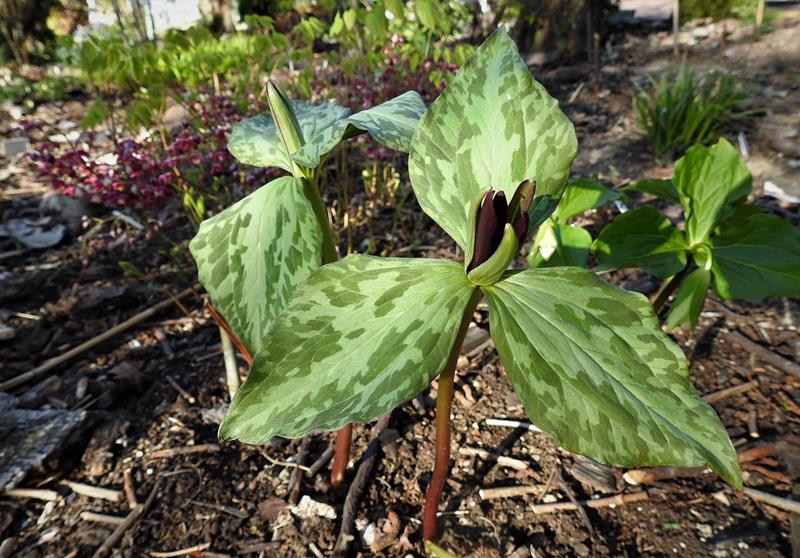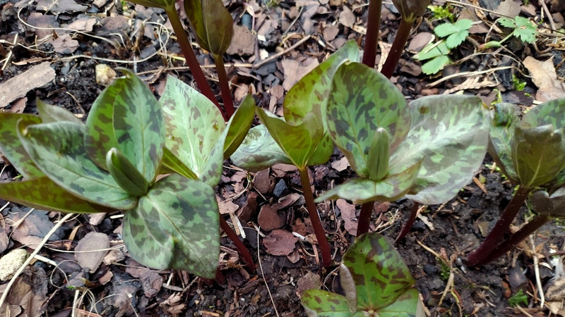 Trillium sessile mimo niskich temperatur rozwinęło liście... Nie wiem, czy zakwitnie, nawet wątpię