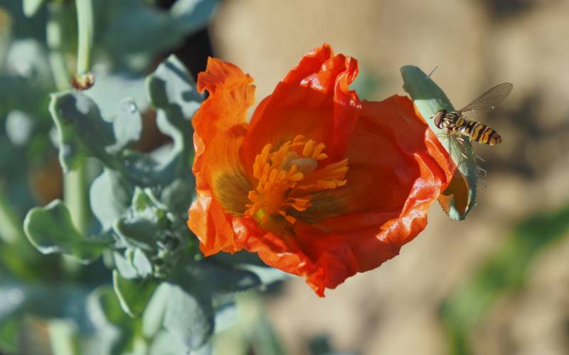 Kwiaty żółte lub pomarańczowe o średnicy do 8 cm. Nasienniki przypominają długie, wąskie, srebrzyste rogi, od których wzięła się angielska nazwa tej rośliny "Yellow Horn Poppy"