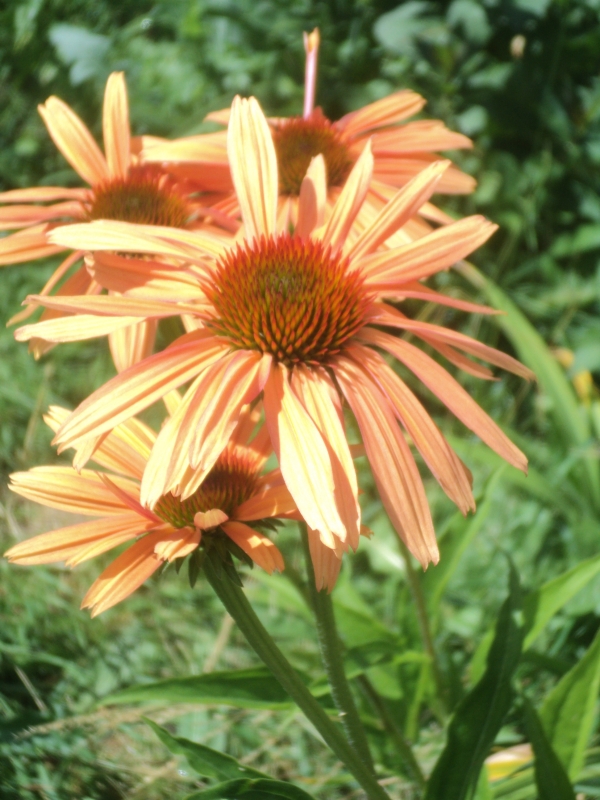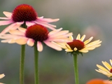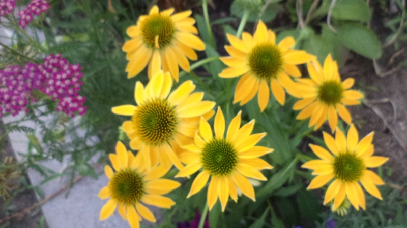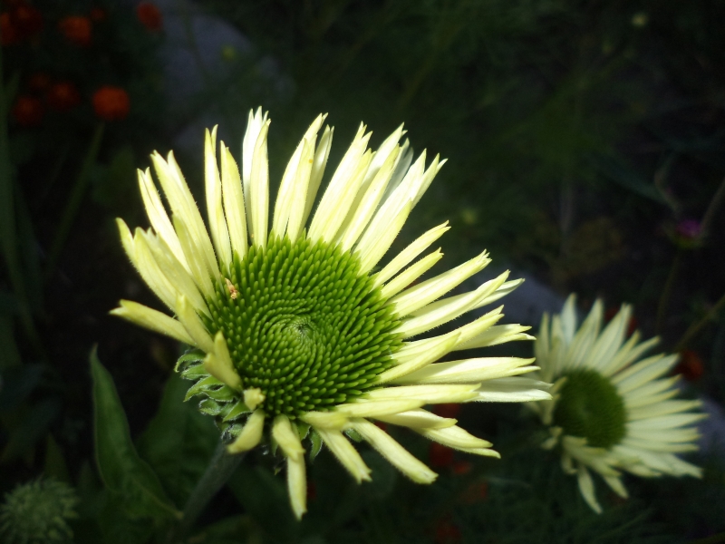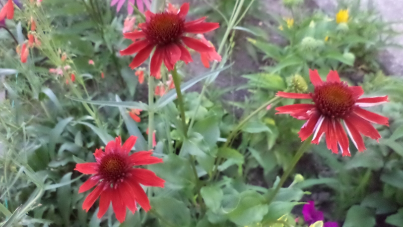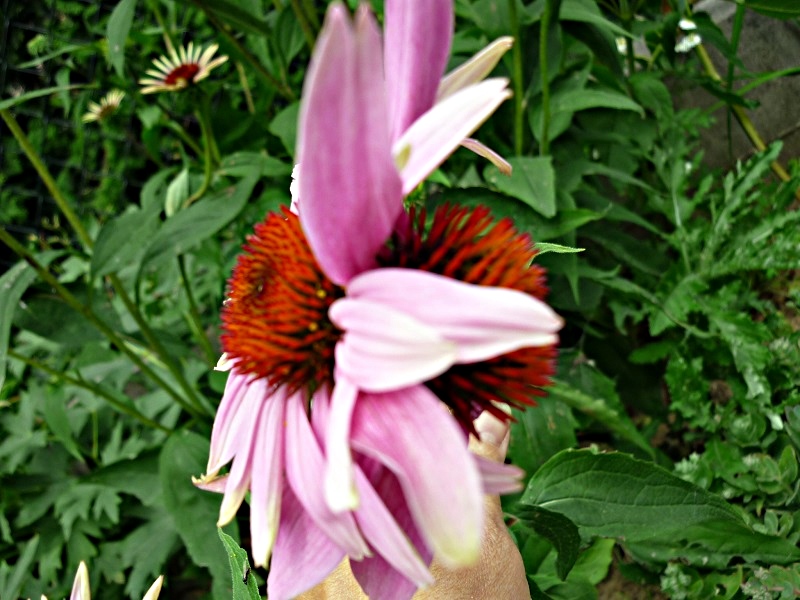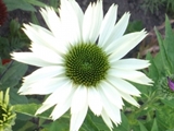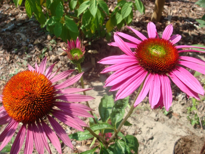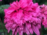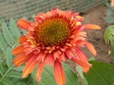 Kwiaty fioletowe lub fioletowo różowe kwiaty języczkowe przytwierdzone do wypukłego osadnika kwiatostanu.