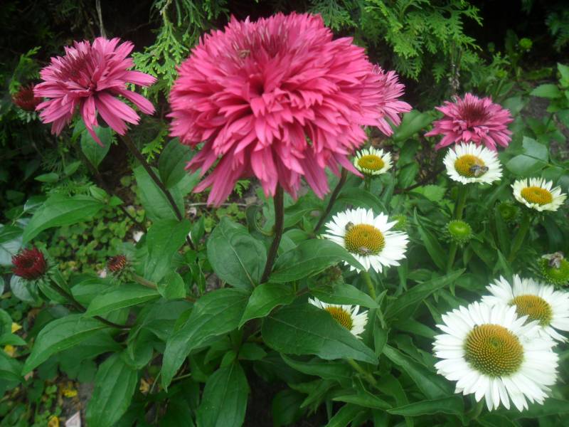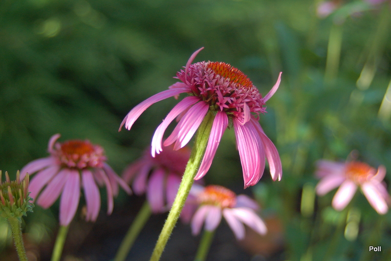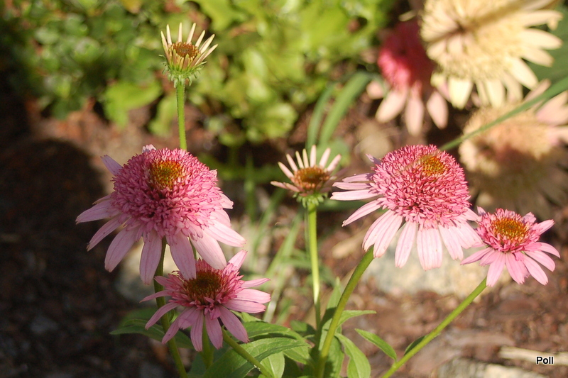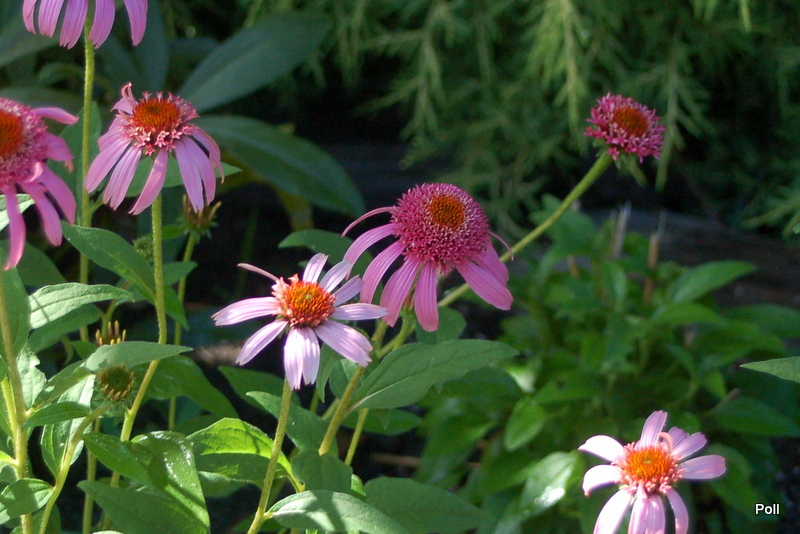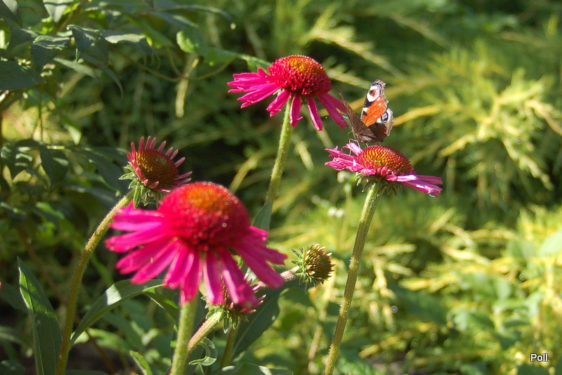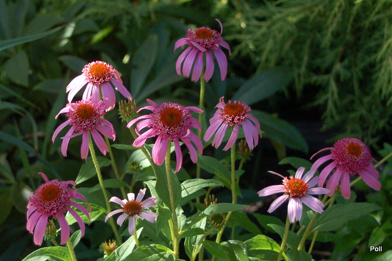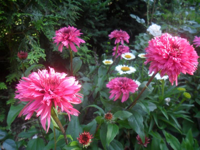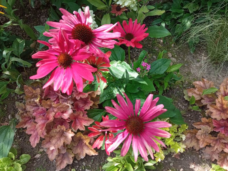 Jeżówki to kwiaty słońca, ale tak mi się podobają, że zawitały na mojej cienistej rabatce. Jakoś sobie radzą B)