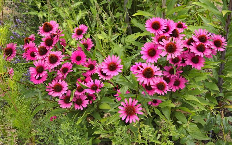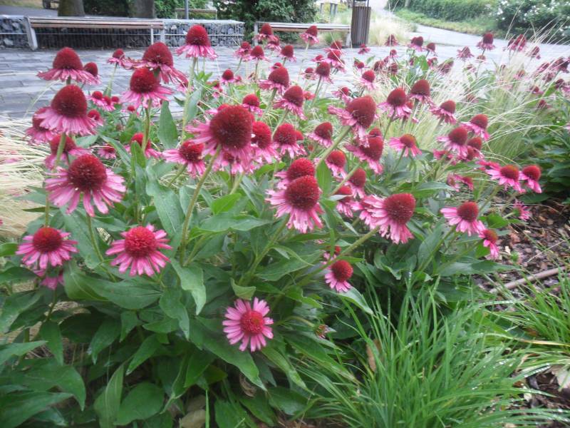 Jeżówka 'Magenta Pearl', odmiana, która ma dorastać dorastać do 40-50 cm wysokości i taką osiągnęła na wojsławickich rabatach.