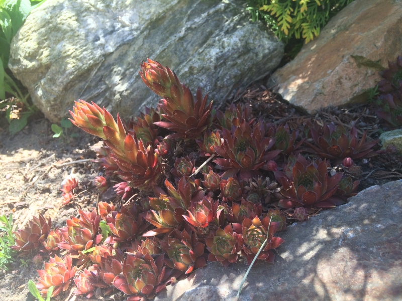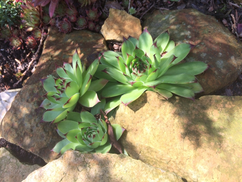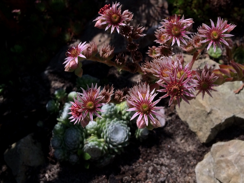 Rojniki, to najmniej wymagające rośliny w moim ogrodzie. Rosną w pełnym słońcu, na mocno nagrzanych kamieniach. Właściwie nie mają kontaktu z podłożem, bo zostały kilka lat temu powciskane pomiędzy kamienie. ;)