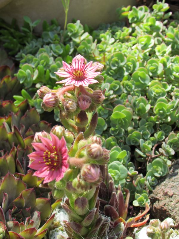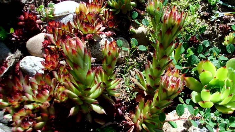 NN- bardzo żywotne, produkują dużo młodych odrostów, które staram się utykać w różnych miejscach. Co roku część rozetek kwitnie, po czym zamiera, zostawiając miejsce dla młodych