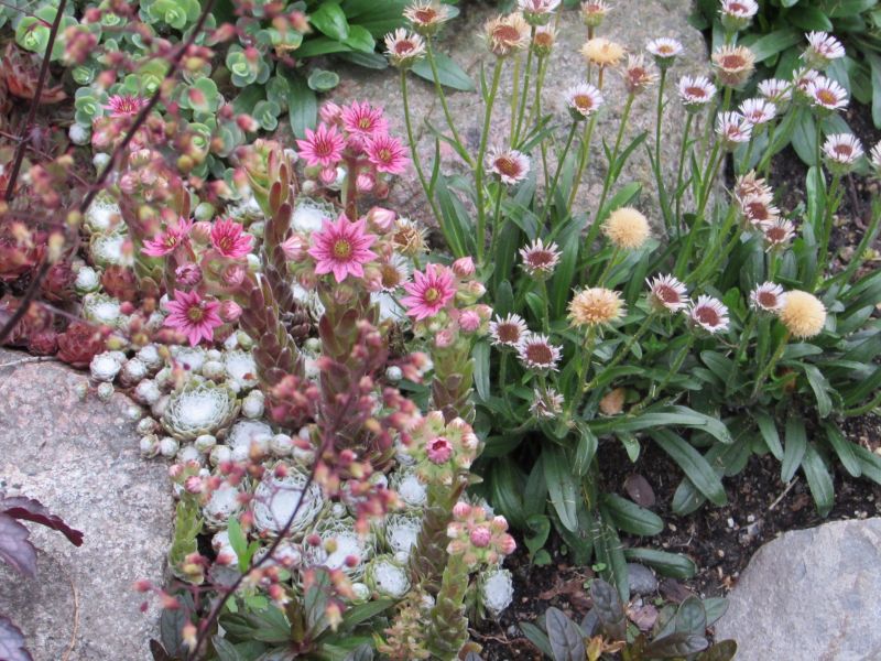 Rojniki znam od zawsze, podobnie jak hosty, choć do niedawna nie miałam pojęcia, że jedne i drugie występują w takiej ilości odmian. Mój niewielki skalniak ucierpiał chyba najbardziej w trakcie remontu i naszych rodzinnych perypetii, ale trochę roślin udało mi się uratować m.in. rojniki. Najlepiej przetrwały rosnące na kamieniach. We wrześniu skalniak przeszedł renowację, posegregowałam rojniki 'na oko', posadziłam i czekam do wiosny.