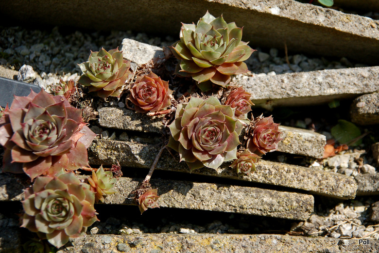 To lato sprzyjało rojnikom, które ładnie się namnożyły. hu_rra Dziś więc zabrałam się za rozdzielanie rozetek i wysadzania ich wokół kamieni.
