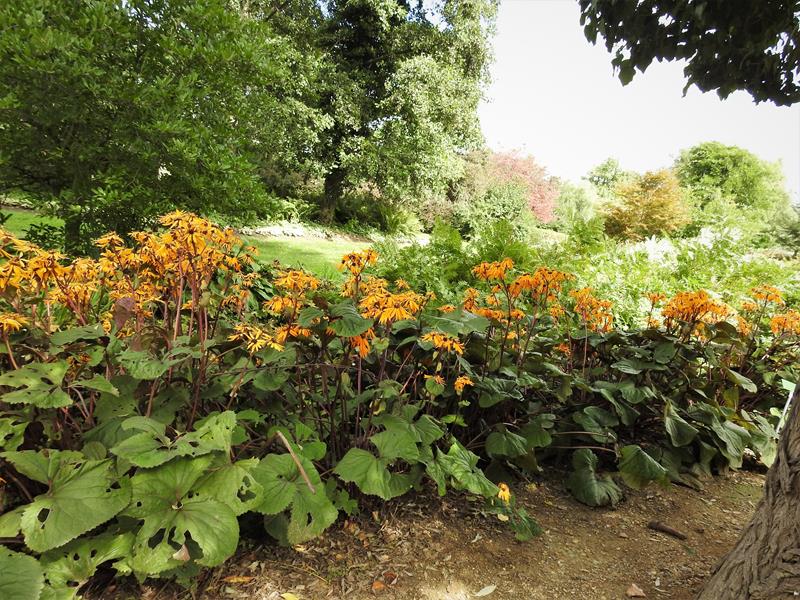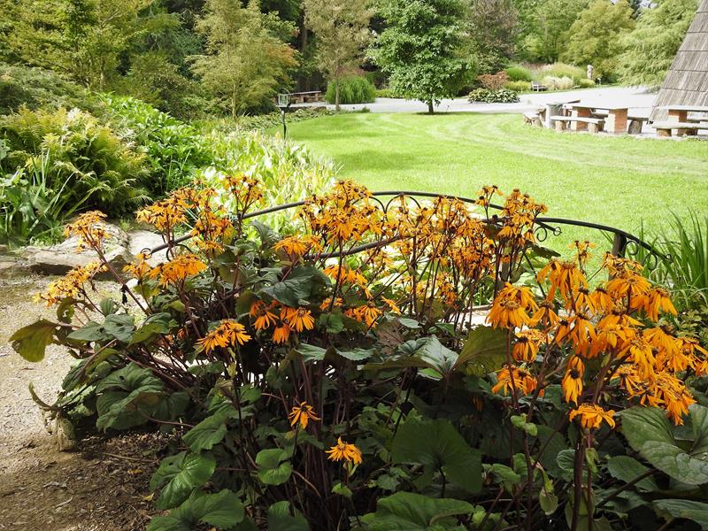 Ligularia dentata 'Desdemona' w Arboretum w Wojsławicach. Pięknie się prezentuje w grupie.