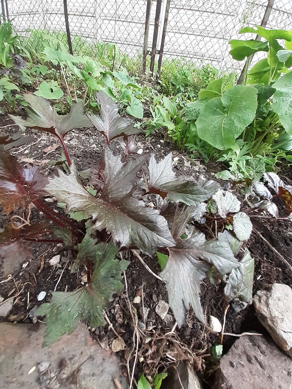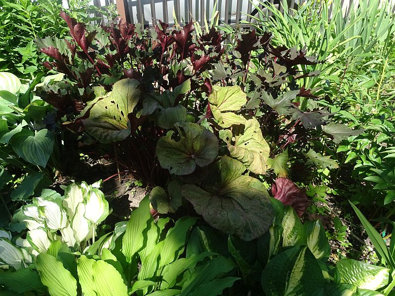 Ligularia tussilaginea 'Kunou Nishiki' całkiem ładnie się rozrosła.