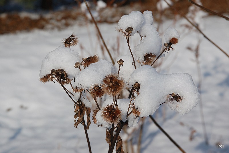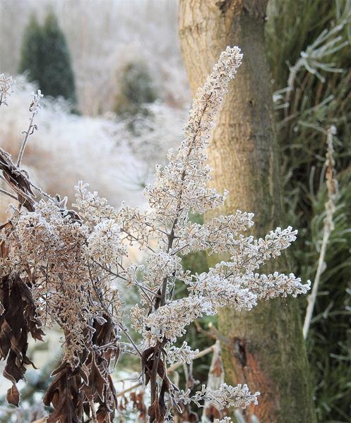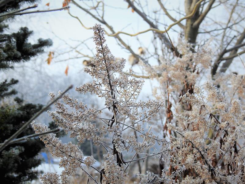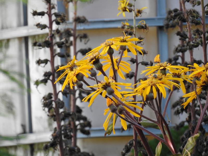 Grudniowe, przekwitłe kwiatostany Ligularii tangutica.