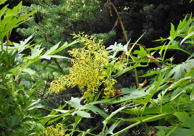 Języczka tangucka to podobno teraz Starzec tangucki ( Sinacalia tangutica, syn. Ligularia tangutica)