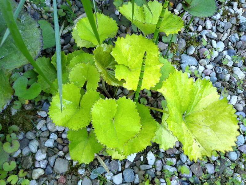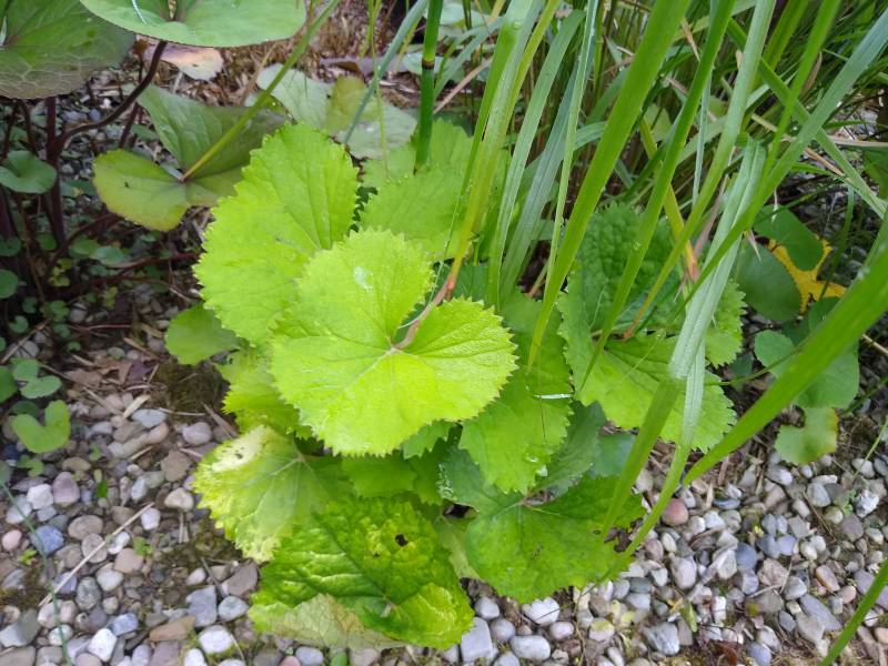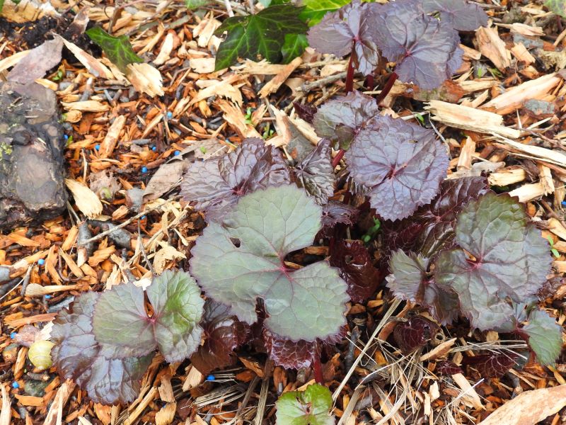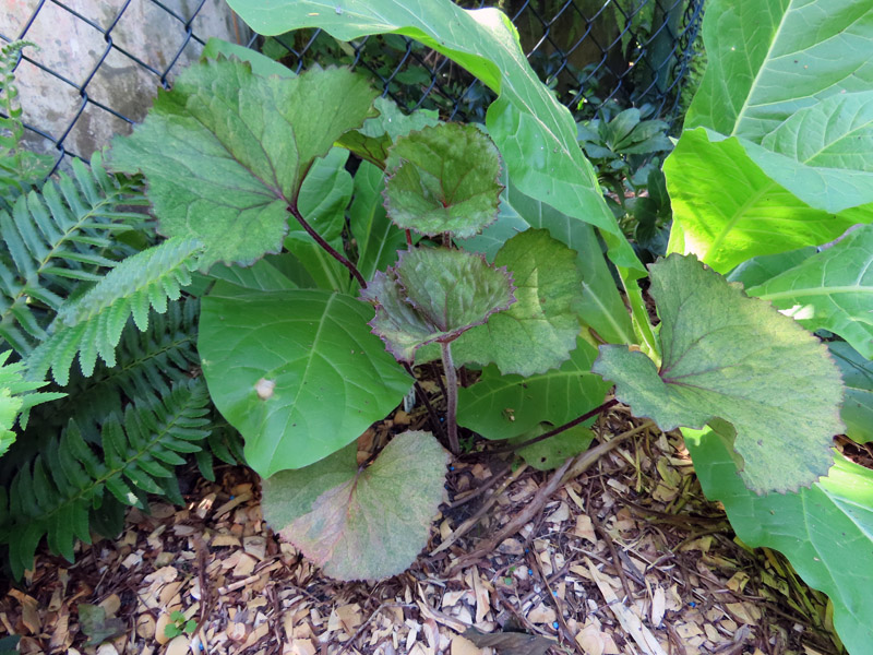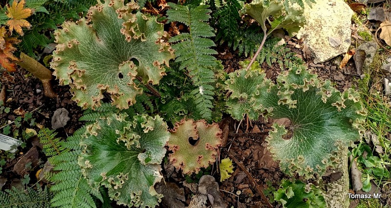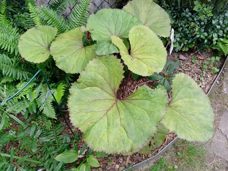 Moje Farfugium japonicum 'Gojisi'/'Crispata' nadal ma sie dobrze, ale na zimę usypuję mu kopczyk ze ściółki.