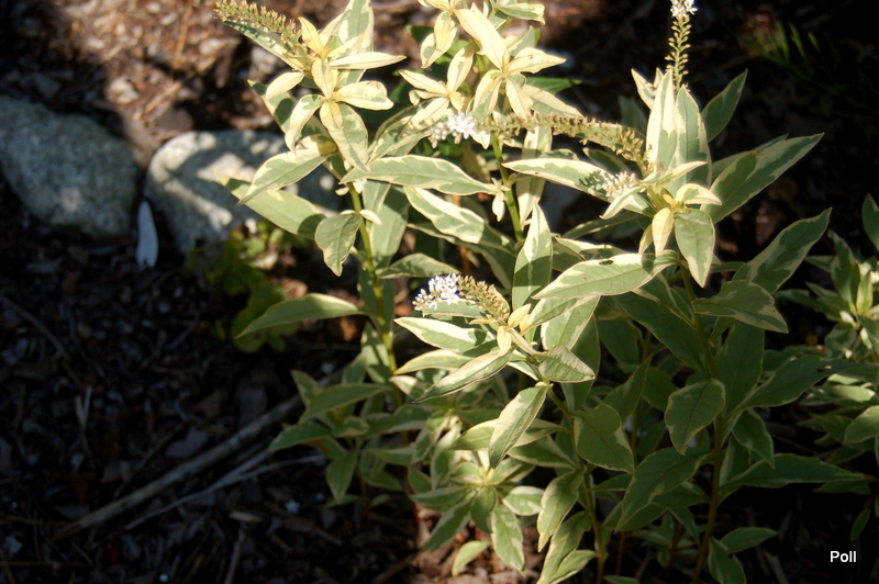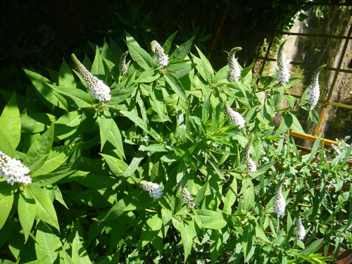 Rok temu, zakładając nowa rabatę skusiłam się na tojeść orszelinowatą 'Geisha' (Lysimachia clethroides 'Geisha'), czyli odmianę ;gęsiej szyjki' :lol: o liściach biało obrzeżonych. Wiem, że wszelkie tojescie lubią być ekspansywne, ale akurat ta trafiła w miejsce, gdzie może się rozrastać. Może nie do woli, ale na sporym kawałku rabaty.