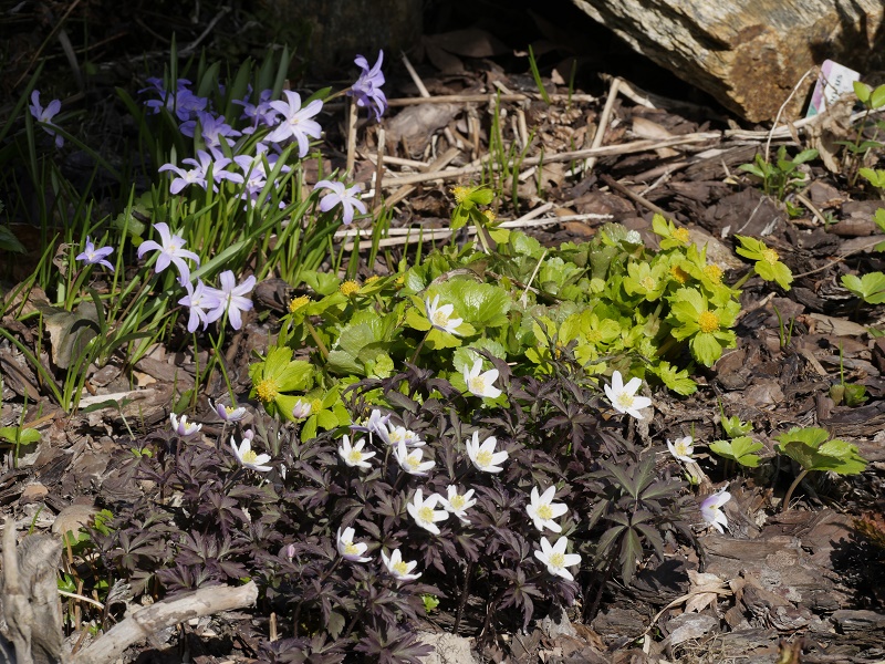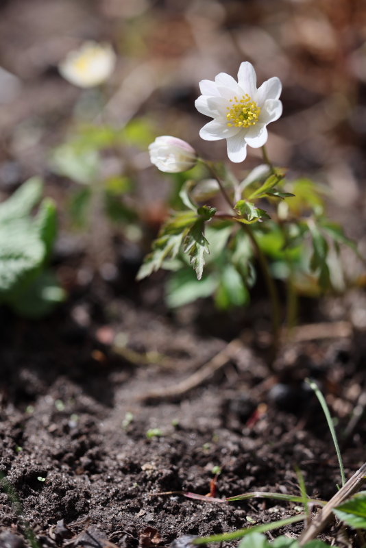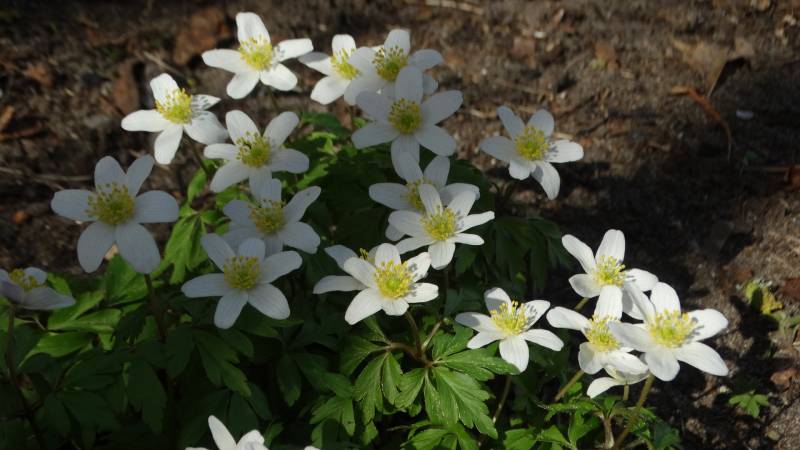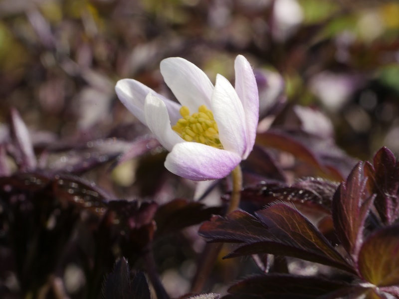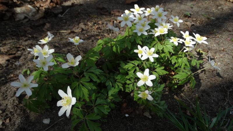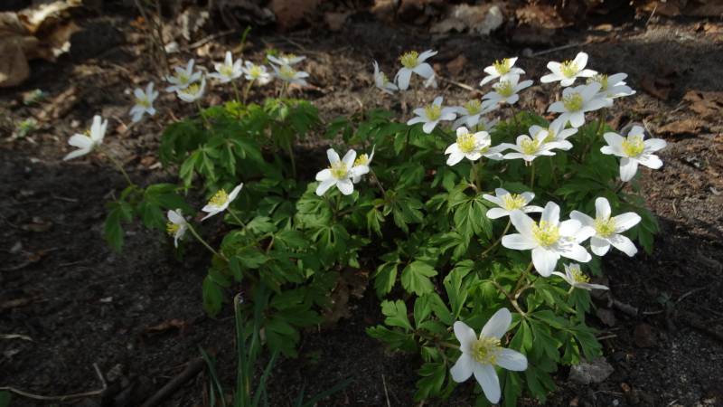 Na wiosną słonecznym stanowisku rozwinął kwiaty zawilc gajowy.