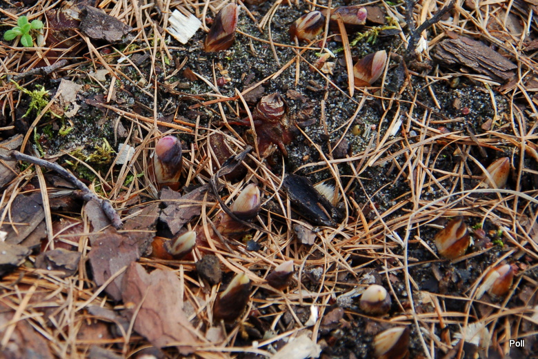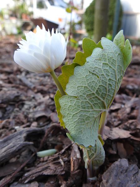 JUz 02.04. pojawiły się pąki kwiatowe gatunku sangwinarii kanadyjskiej (Sanguinaria canadensis)