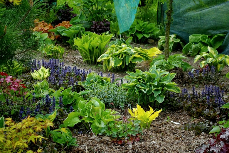 Polu moje hosty również rosną wśród dąbrówki rozłogowej i w ubiegłym roku mocno ją w tych miejscach przerzedziłam w obawie, że zabiorą miejsce hostom. Czy moje obawy były słuszne czy też hosty sobie radzą z takim ekspansywnym sąsiadem?