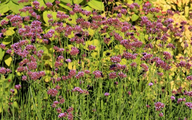 Całe łany werbeny patagońskiej/argentyńskiej (Verbena bonariensisw) w Ogrodzie Botanicznym we Wrocławiu