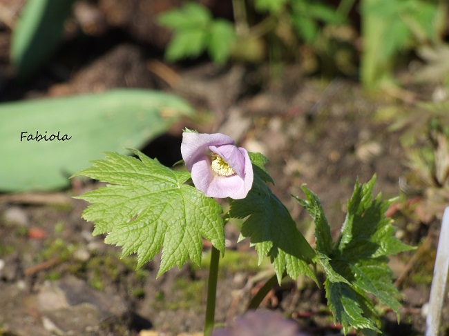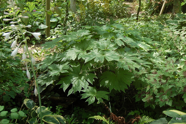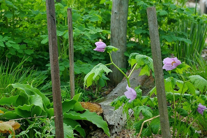 W ubiegłym roku , kiedy opadły na nas pierwsze przymrozki, glaucidium dopiero wychodziło z ziemi i nic złego mu się nie stało.Po zapowiedziach następnej fali zimna, ochroniłam je włókniną podwieszoną na czterech kołkach tak wysoko, by nie dotykało rośliny. Końce włókniny przycisnęłam do ziemi kamieniami i kawałkami drewna. Teraz włókninę zdjęłam, ale kołki zostawiłam...na wszelaki słuczaj.
