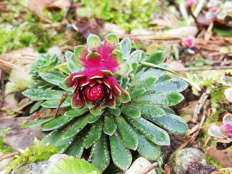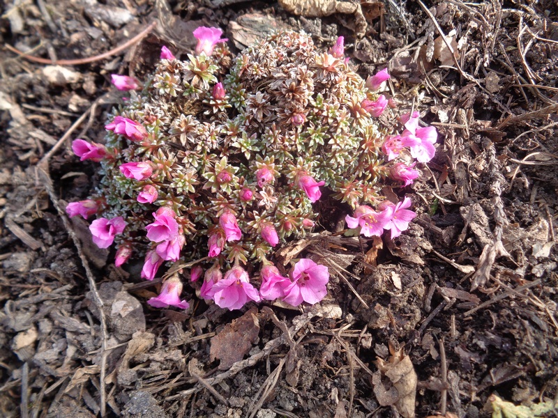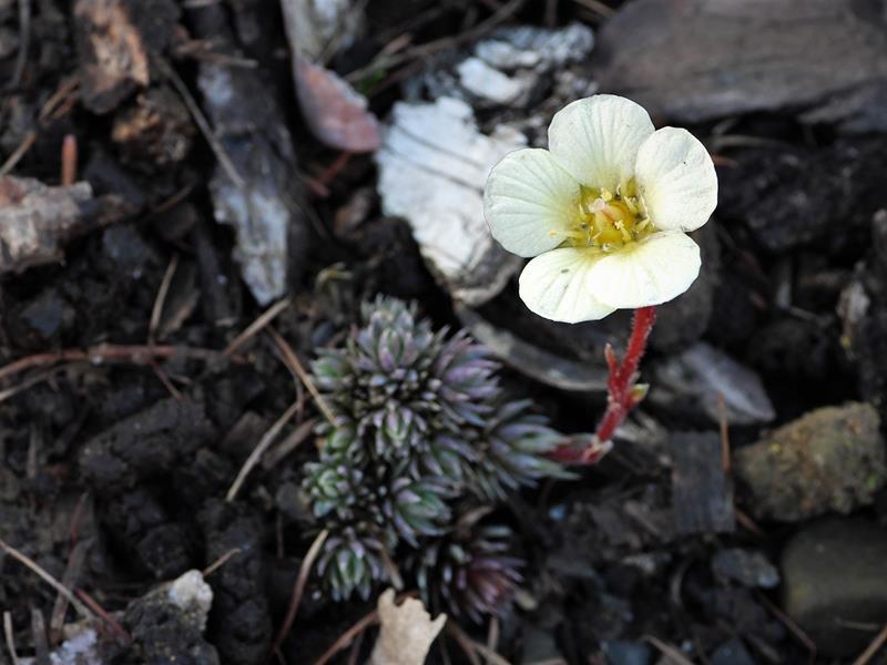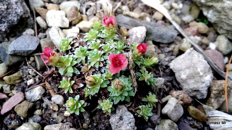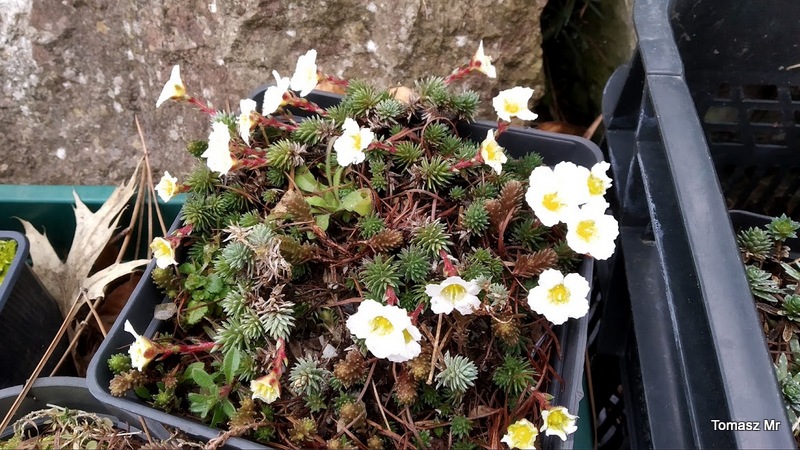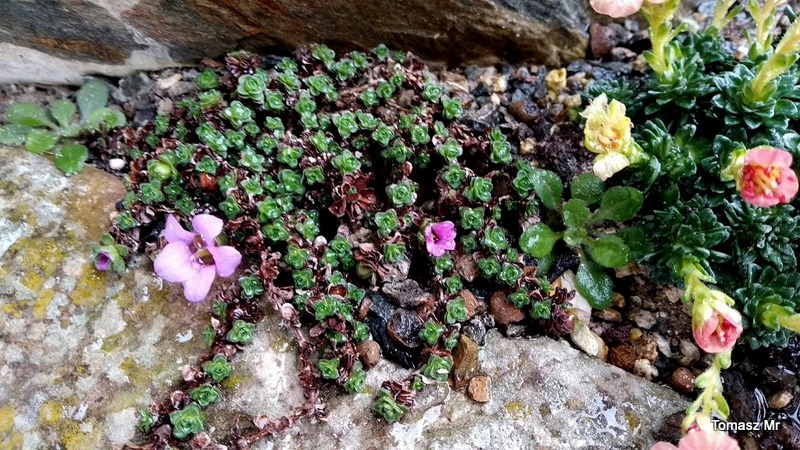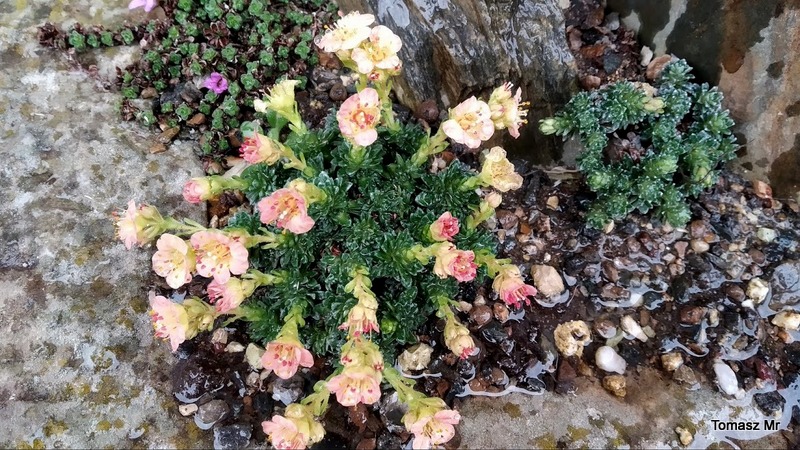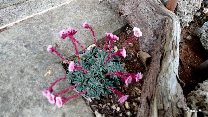 U mnie zakwitła skalnica Beni Tsukasa.Mam dwa egzemplarze,i co ciekawe przez tą dziwną wiosnę jedna zakwitła,