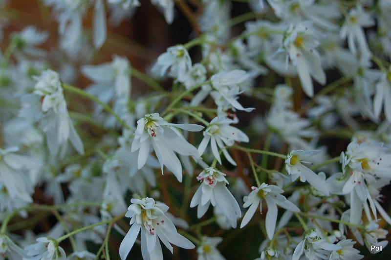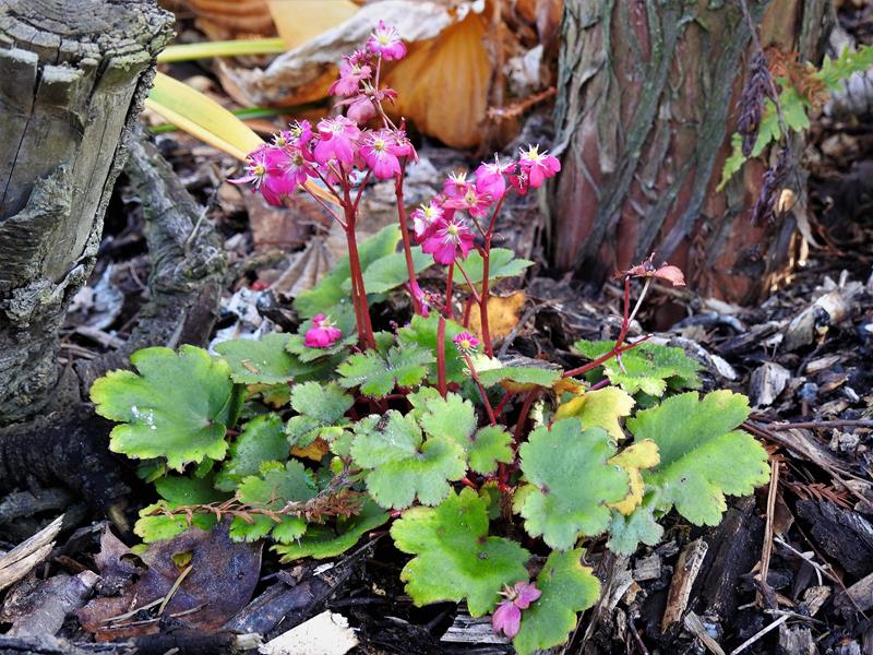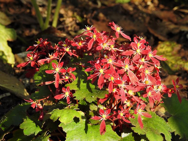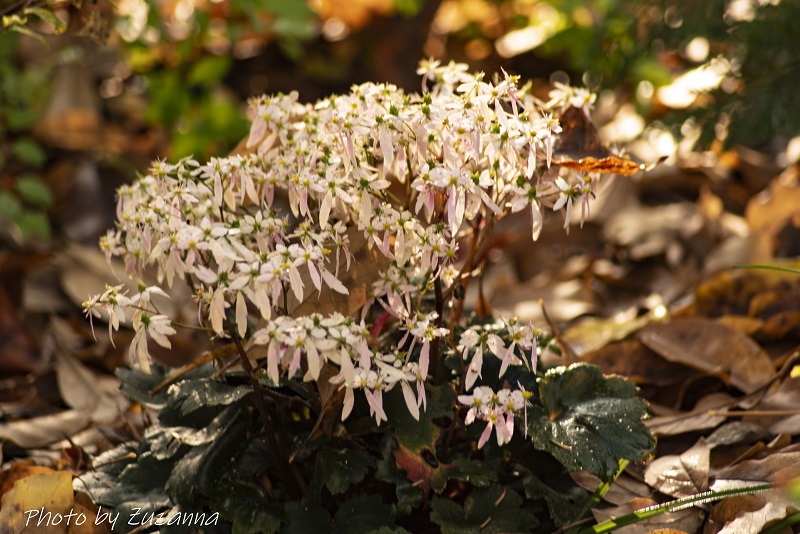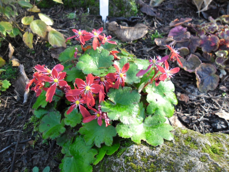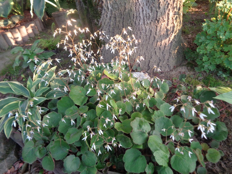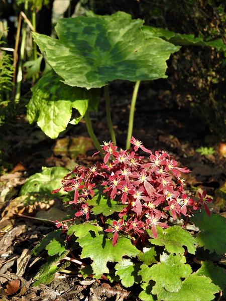 Saxifraga fortunei 'Gokka' w fazie rozwijania pąków kwiatowych wczesojesienne przymrozki omroziły ją, ale przy obecnej prawie letniej pogodzie odbudowała się i zakwitła clap