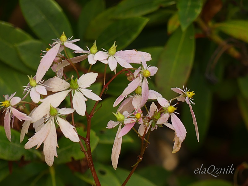Kwitnie Saxifraga fortunei 'Gokka'. Fajnie przyrasta na stanowisku półcienistym, naturalnie wilgotnym, przepuszczalnym.