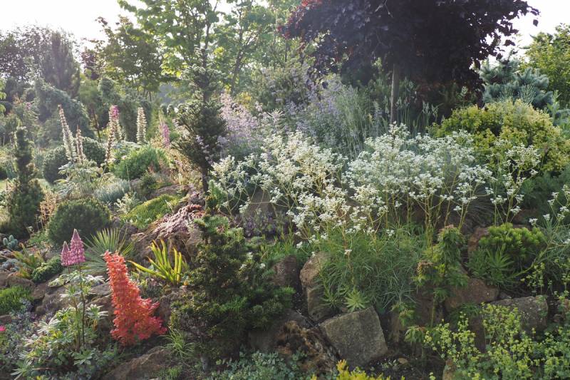 Obie rośliny rosły w ogrodzie skalnym, w cieniu dużego kamienia.