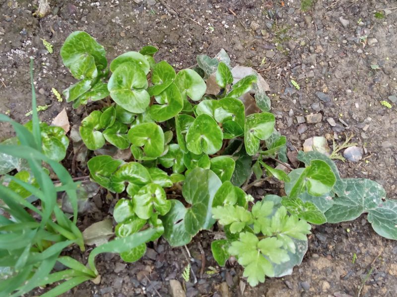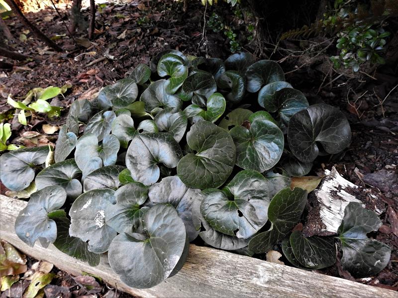 Asarum fukienense już się zadomowił i ładnie się rozrasta, ale kwiatów ma niewiele (tzn. w zeszłym sezonie jeden i w tym tak samo :nie_wiem )