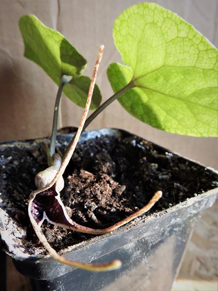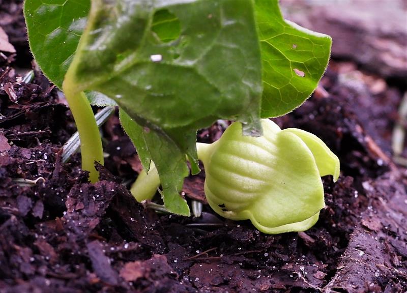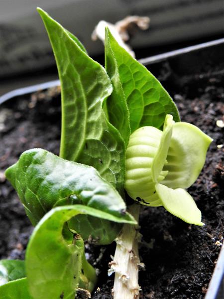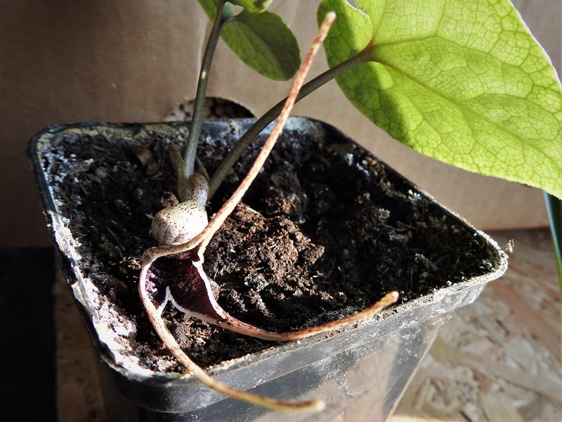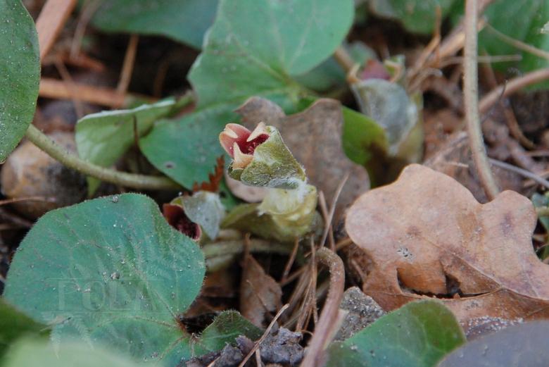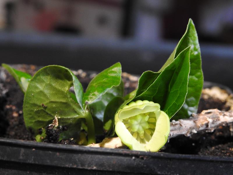 Zakwitł mój maleńki Asarum sieboldii 'Green Flower Form' clap (zimowy zakup, więc siedzi w chłodnym pomieszczeniu i czeka na wiosnę)