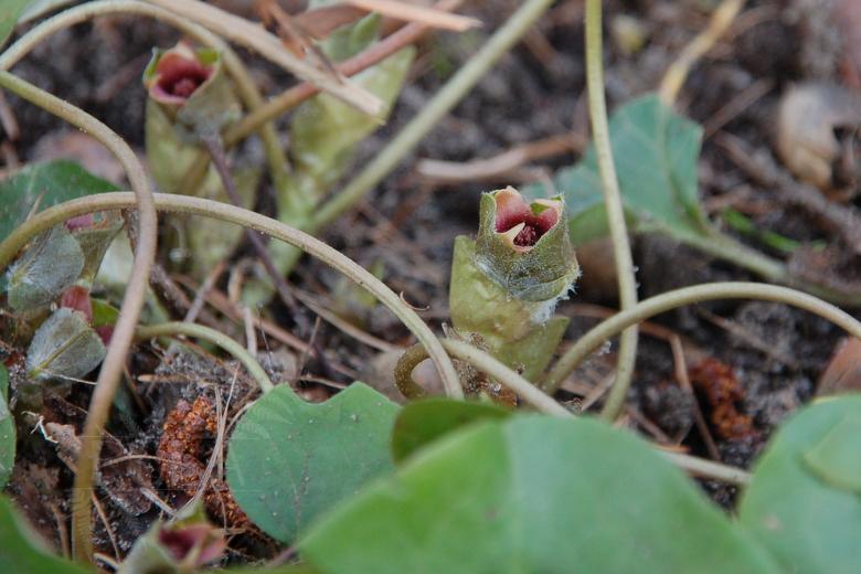 Ruszyły kopytniki :) Ku mojemu zdziwieniu pierwszy zakwitł maleńki jeszcze Asarum sieboldii 'Green Flower Form'.