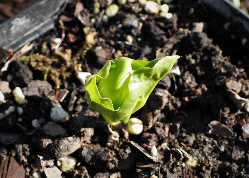 Pcha się pierwszy kwiatuszek, ale tak dziwnie, inaczej, bo ze środka liści.