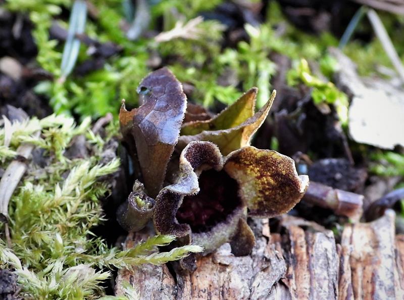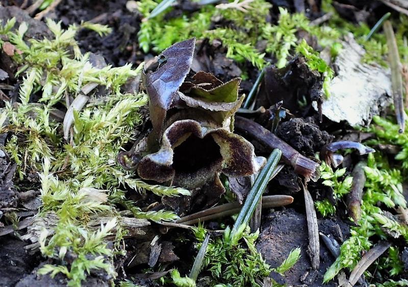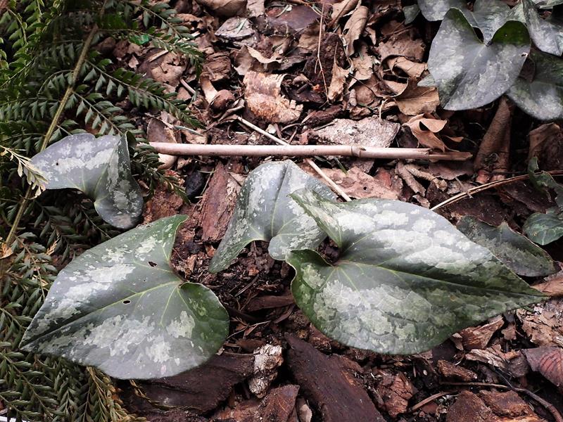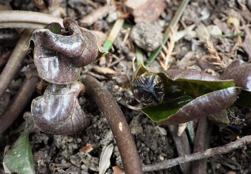 Asarum fukienense drugą zimę spędza w gruncie, okryty gałązkami igliwia. W ostatnim czasie było ciepło i słonecznie, więc go odsłoniłam, a potem przyszło -12 °C, a ja zapomniałam nakryć ponownie i omroziło kwiatuszki :(