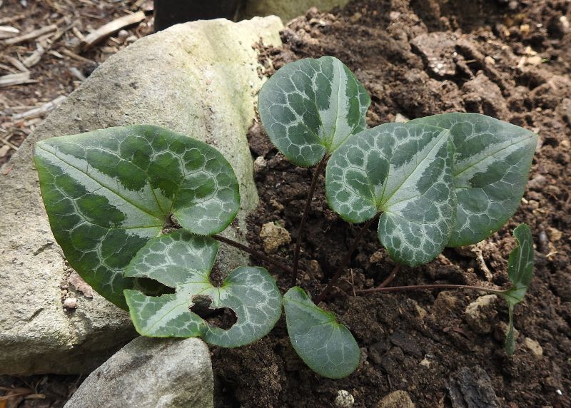 Asarum marmoratum , kopytnik o ciekawym, srebrzystym rysunku na liściach. Do mnie zawitał wiosną tego roku.