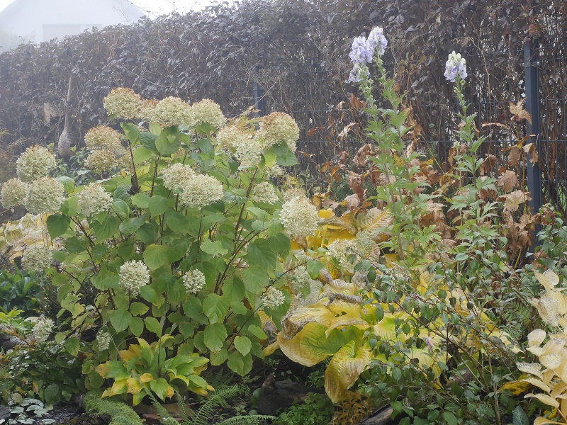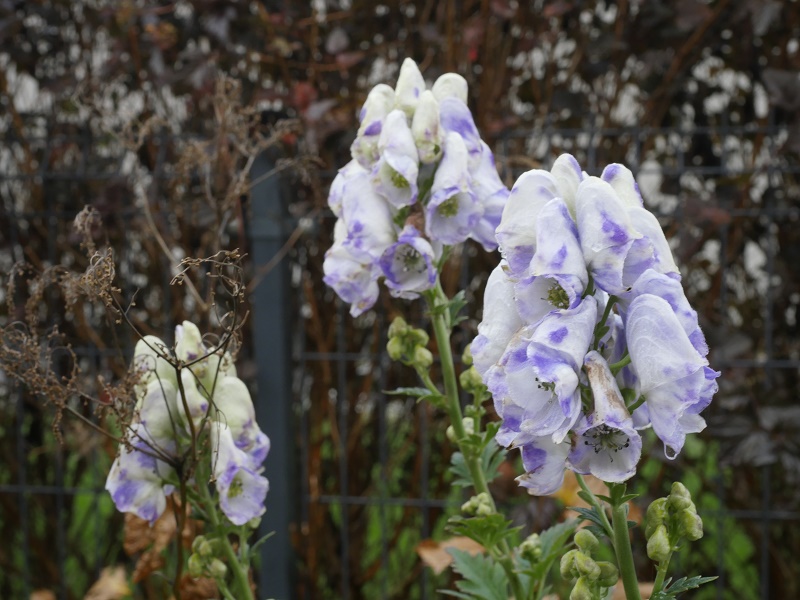 Tojad Fischera - Aconitum fischeri - bardzo odczuł tegoroczne upały i suszę. Za mało go podlewałam, jest niższy i kwiaty są mniejsze niż w poprzednich latach. Od czasu do czasu pojawiają się samosiewki.