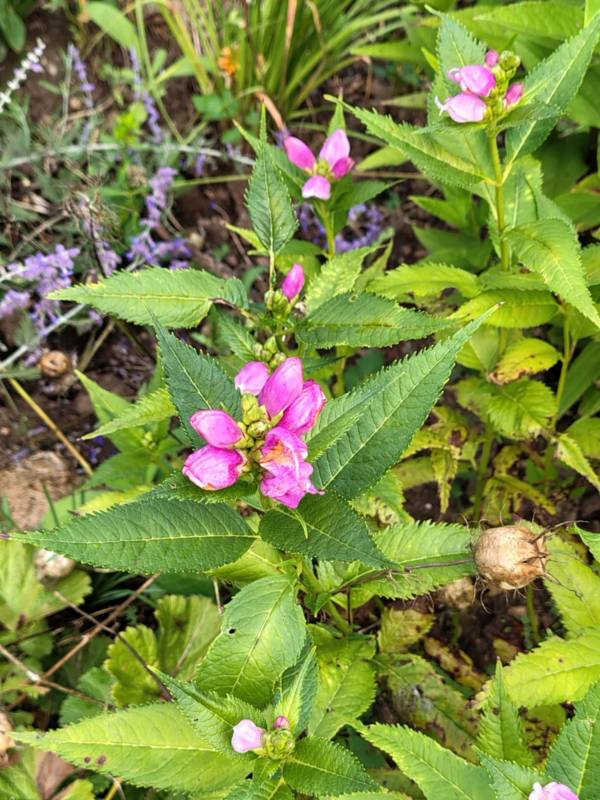 Żólwik ukośny Chelone obliqua, różowy, rośnie u mnie na półcienistym stanowisku. To suche miejsce, więc nie rozrasta się migiem.